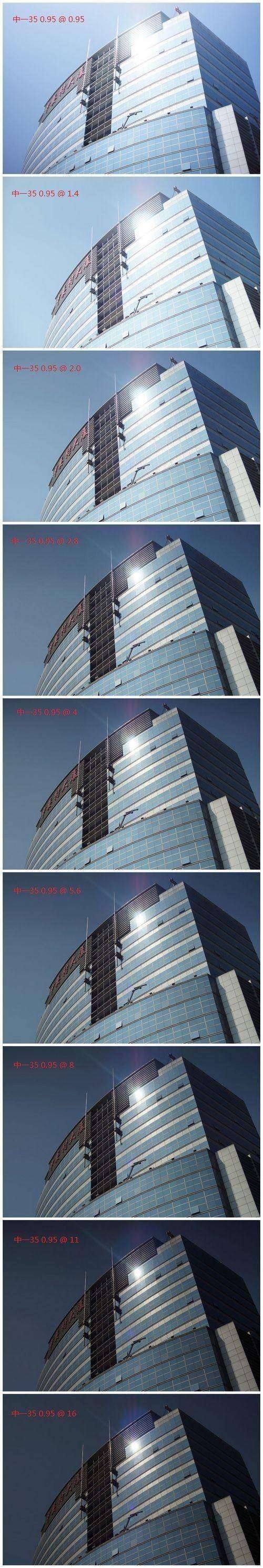 注意光圈超过4之后全部过曝,同时由于压缩,图片质量下降很严重,请只观察星芒形状。关于画质,后面再看。