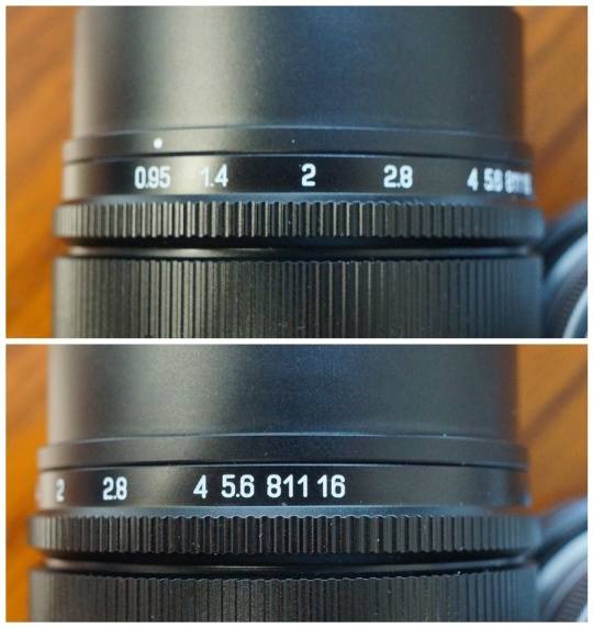另外,这个镜头的光圈刻度比较有意思。大光圈0.95到4的部分行程很长,而5.6到16完全挤在一起,行程很短。虽然这个头主要是用大光圈,但还是不喜欢这个设计。虽然能用,但行程长一些总是更舒服。