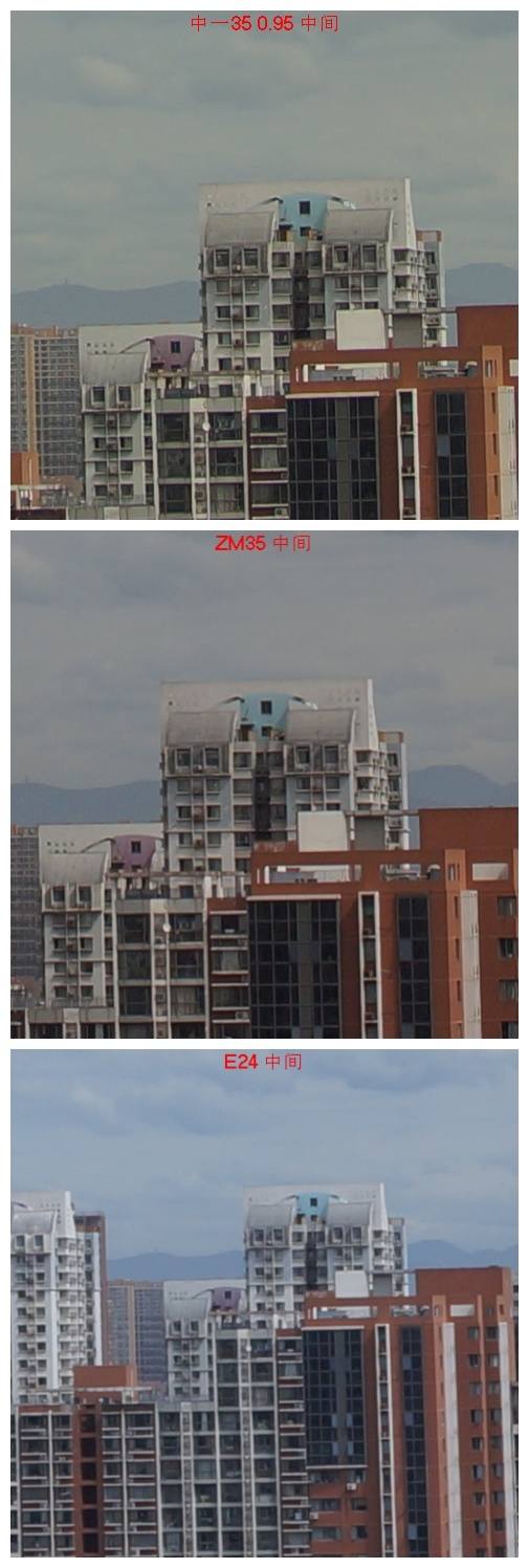 对于此,我拍摄了两组画面,用于对比中一35 0.95,ZM35 2和E24 1.8。