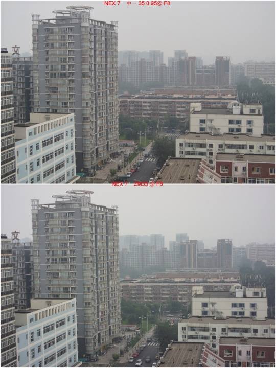 下面上图:NEX 7拍摄,光圈F8,中一35 0.95 VS ZM 35