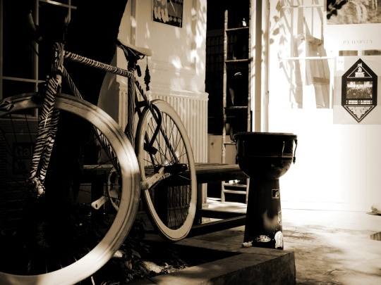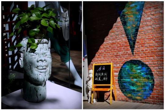 店前的非洲鼓和自行车,依稀间还有着盛夏时光残留的余温。