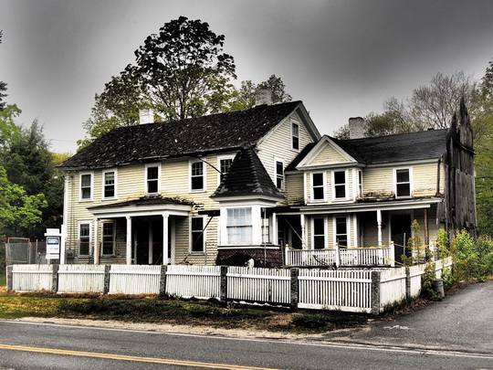 上班天天路过这个镇,镇中心有个二百年的老屋出售。在美国这种地界这种年岁的房子一般都是地标(landmark),在国内就该叫文物保护单位,房屋的维护施工得有委员会批准,必须符合原样,又贵又麻烦,改建一般不可以。这个镇的房产很贵,明显没人愿意花大价钱接这个烫山芋,两年多没人买,原房主也不再维护了。所以看着这房子一天天烂下去。