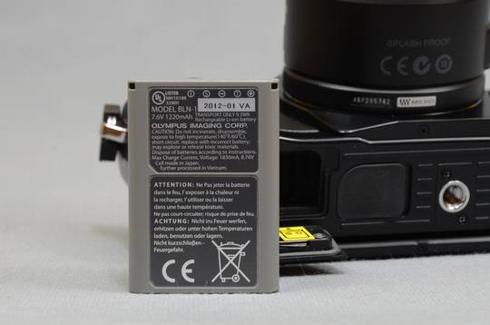 机身之外该机支持电池手柄 HLD-6,该手柄为E-M5专门设计的,可放锂离子充电电池BLN-1一节。并采用了防尘、防水溅设计。