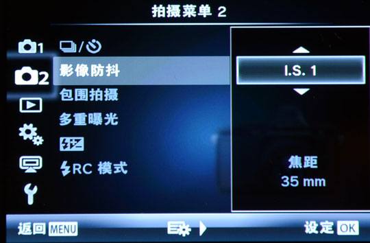 影像防抖分IS1(自动)、IS2(垂直防抖)、IS3(水平防抖)、OFF(防抖关闭)。