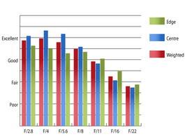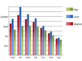 在23mm端,整体清晰度有所提高,最大光圈时中央和边缘部分的锐度表现很好。同样的,f/4时表现最佳。