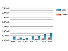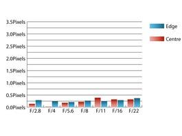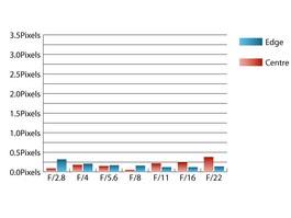 在整个变焦范围内色差控制都很不错,只是在12mm端和f/22时略有上升。此性能受衍射影响很大,所以尽可能避免。