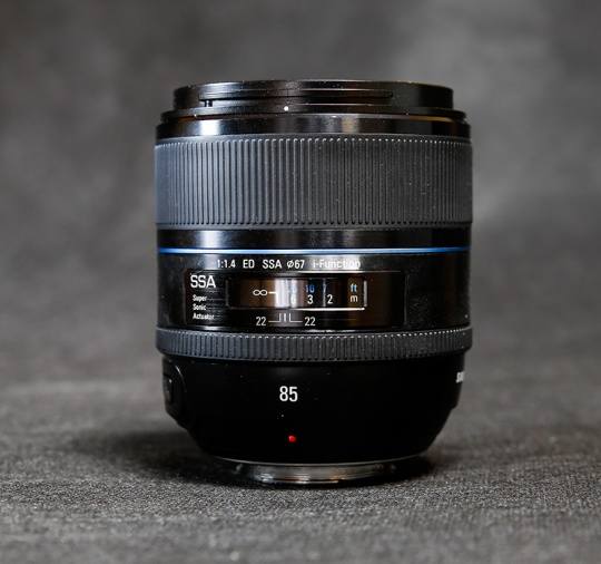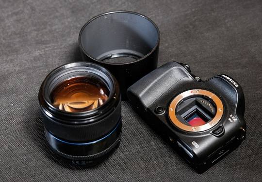 NX20机身、三星 85mm F1.4 ED SSA和遮光罩