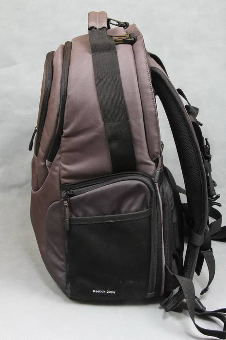 另一个侧面,我们看到这一个侧面不一样的地方在于Reebok 200N多加了一个黑色的弹性非常好的口袋,这里可以放三脚架或者水瓶。