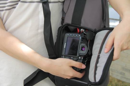 背包时你可以从侧面打开,快速取出相机