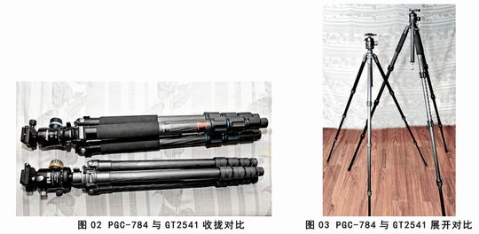 以下为富图宝PGC-784三脚架和捷信GT2541的收拢、展长之间的对比,见图2、图3: