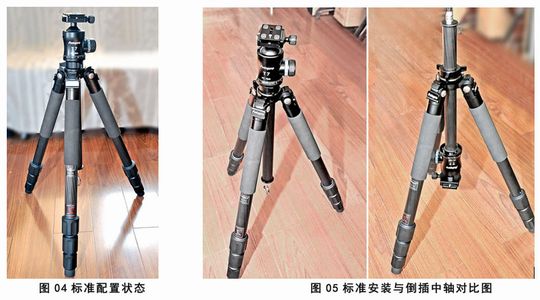 图4是PGC-784脚架的标准套装状态;图5则显示了倒插中轴使用达到接近地面高度的对比图: