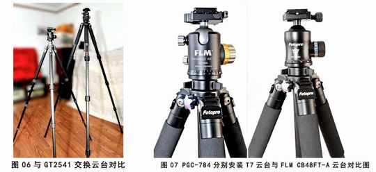 在对比过程中突发奇想:若是将PGC-784安装的T7云台与GT2541安装的FLM CB48FT-A云台互换一下会是什麽效果?说换就换,没想到,PGC-784安装上比自己贵一倍的云台,一点也没显得“寒酸”,好像倒更加匹配!而对于捷信GT2541来说,则增加了一个更加经济的合理搭配方案向影友推荐。见图6、图7和图8: