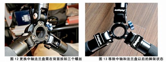 2.移除中轴的设计:能够移除中轴,将另外的专用法兰盘安装在脚架上,这样三脚架就可以拆卸掉中轴使用,从而取得更低的高度和更轻的重量。