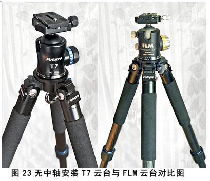 再次试验安装两种不同品牌云台的状态。由于此时脚架托板直径为70mm,所以使用FLM CB48FT-A云台显得更匹配了。