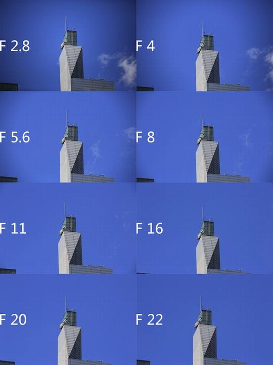 对镜头的暗角测试也是一项必要内容,小编分别拍摄了广角端和长焦端各档光圈下的暗角情况。