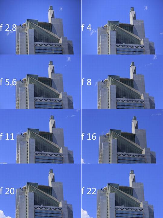 从上图可以看出,适马120-300/2.8在最大光圈F2.8的时候画面锐度并不理想,从F4后开始得到很到改观,在F8时达到最好,随后到F16保持良好,从F20以后锐度开始下降。