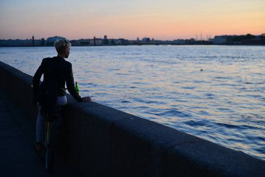 圣彼得堡,涅瓦湖边。烟酒人生,这是俄罗斯人生命中最重要的两样东西。女子沉醉音乐和自己的世界里,仿佛周遭的浮华与她全然无关。