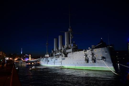 依然是圣彼得堡,夜幕中的阿芙乐尔号巡洋舰。中学历史,打响“十月革命”第一炮的,就是它了!“阿芙乐尔号”巡洋舰原为俄国波罗的海舰队的巡洋舰,舰长124米,宽16.8米,1903年编入现役,1905年5月曾参加过日俄间的对马战役。“阿芙乐尔”意为“黎明”或“曙光”,在罗马神话中,“阿芙乐尔”是司晨女神,她唤醒人们,送来曙光。1917年10月24日21时45分,“阿芙乐尔号”巡洋舰炮击临时政府所在地冬宫,宣告了“十月革命”的开始。