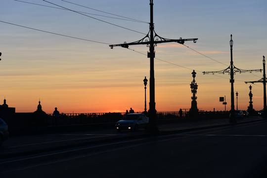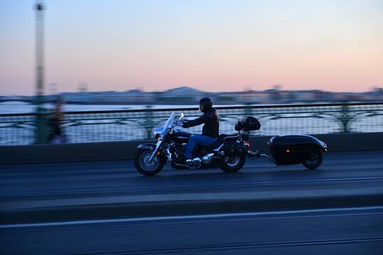 圣彼得堡,一辆摩托飞速通过涅瓦河桥