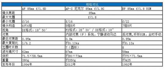 显然这支镜头是针对AF 85mm f/1.8D的更新,那么这种更新最大好处就是镜头内置宁静波动马达(SWM),当配合使用如尼康D5000系列、D3000系列【注】这类不带自动对焦马达的入门级DX格式数码单反相机时,该镜头可进行自动对焦。 那么这支镜头就是个老头内置SWM版?当然不是!下面我们看一下规格对比。