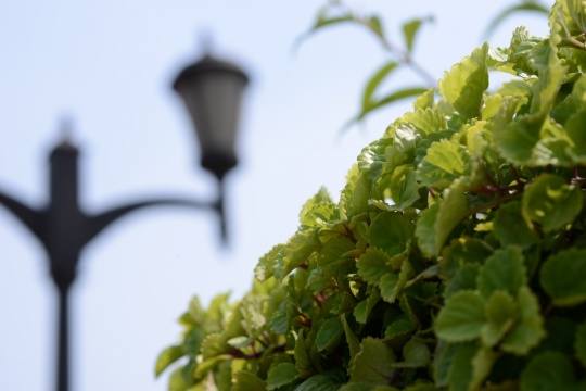大光比逆光下,我们观察一下叶片、建筑明暗交接部分。从图中可以看到这款镜头全开光圈存在紫边,但并收到f/2.8后紫边有所减轻,f/4.0之后基本消失。