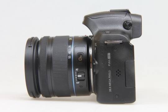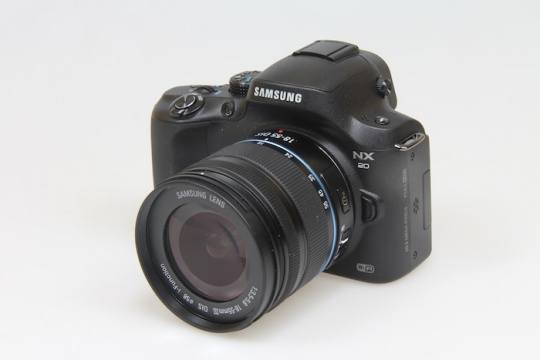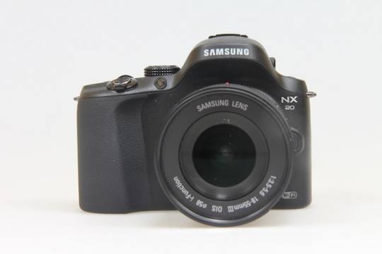 NX20是目前三星NX系列相机的旗舰机型,外形酷似一台“小单反”,但是由于取消了反光镜设计结构,实际手持的大小比单反要小不少,搭配套机镜头18-55也显得很搭配,不会出现大头身子小的情况。