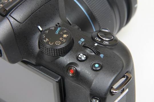 NX20的体积在无反相机里不算轻薄,但是整体与镜头搭配较为合理,因NX20加入了电子取景器的设计,因此块头要比新发布的NX210要大一点点。NX20依然采用了工程塑料作为外观材质,手持处采用了比较细腻的蒙皮防滑设计。因为是无反相机,因此手柄的整体要比传统单反小一些,如果手较大的男性握持NX20可能会感觉偏小,但是仍然可以紧紧把持NX20。