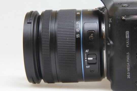 NX20套机镜头依然选择了18-55焦段镜头,此次三星NX20将i-Function功能升级到2.0,除了可以通过镜头控制相机光圈、快门、白平衡、曝光补偿、感光度等参数以外,还可以用来选择智能滤镜、魔术相框、智能变焦。