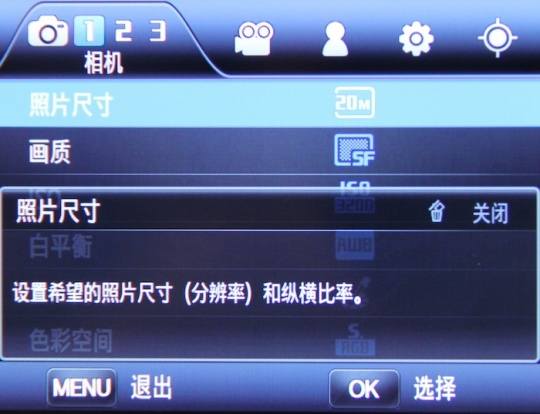 拍摄参数设置,画面停留在某个选项2秒钟的时候相机会给出具体该参数介绍
