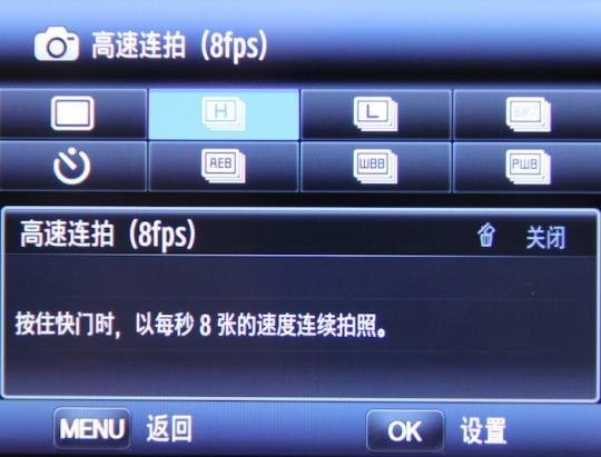 | 驱动模式: | 单张、连拍、高速连拍、自拍、包围曝光(AE、WB、PW) |