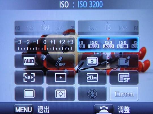 在操控按键区域有Fn功能键,小编觉得这个按键相当的实用,它集合了大部分最常用的拍摄参数设置,可以非常快速方便的进行调节