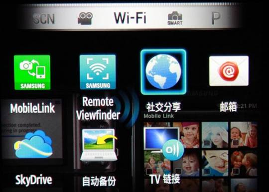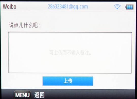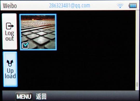 在菜单的选项中,还有一个非常重要的部分,就是此次NX20的特色功能:WIFI功能,我们来看看使用WIFI功能如何发微博。