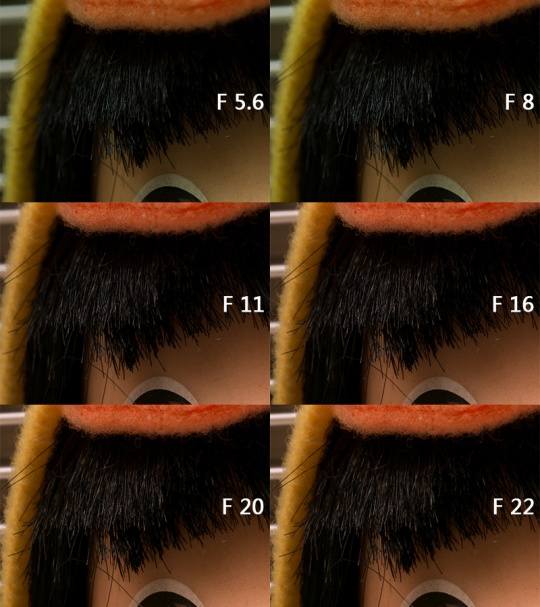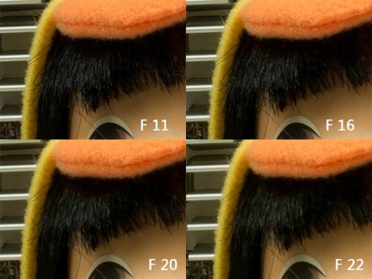 发丝的锐利质感一直保持到F16,从F16开始,F20和F22的锐利度下降比较厉害,不过一般情况下也用不到F20或者更小的光圈。