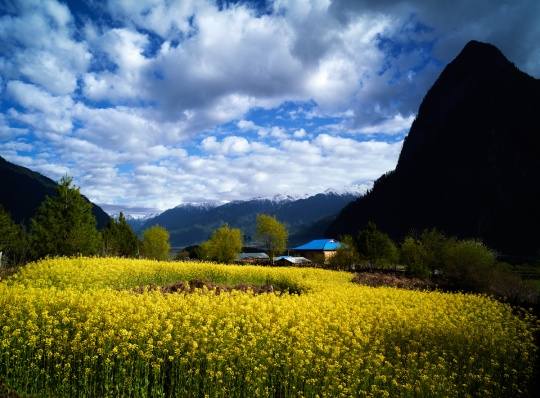西藏易贡田园风光。据当地人说,右边这个黑乎乎的山是名副其实的铁山,打雷时经常受雷击(12STC,HR32)