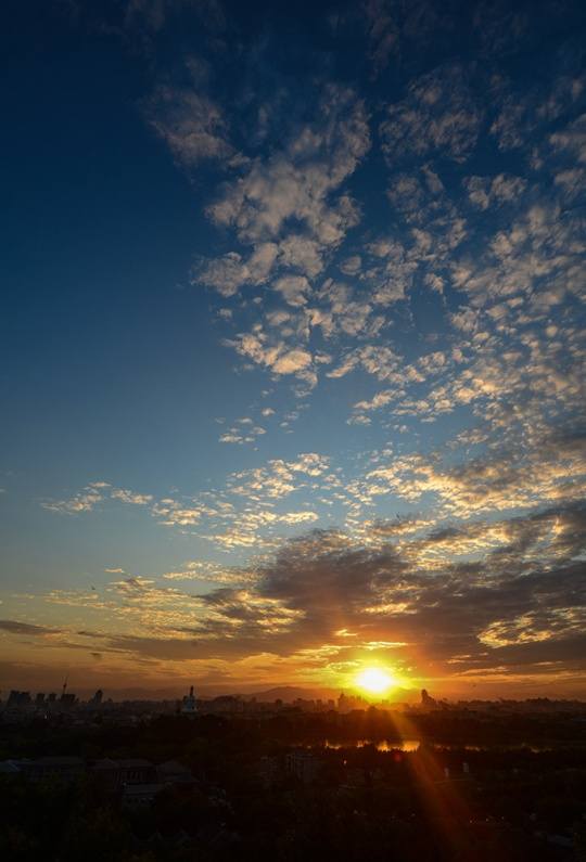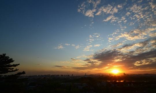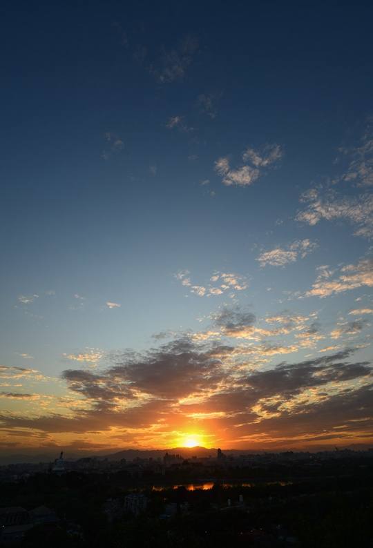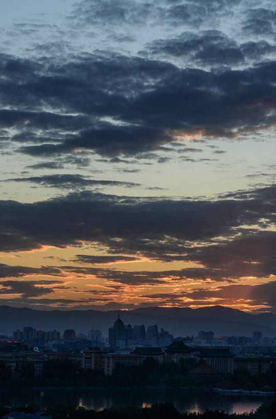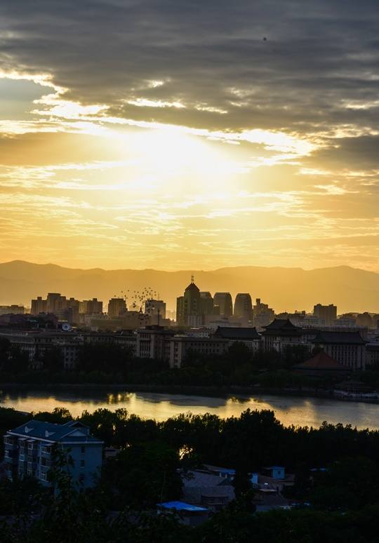 傍晚的北京景山公园上,一大群摄影爱好者架起相机,准备拍摄一天中第二个美丽的时刻:日落,拿起相机,记录下这振奋的时刻。