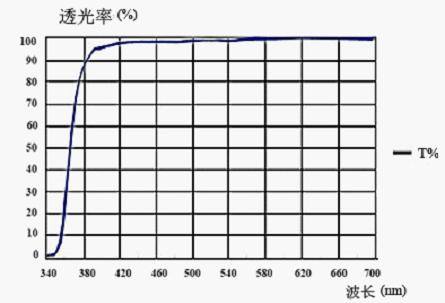 通过官方给出的透光率曲线我们可以看出数码大师UV的原料镜片对可见光部分具有很高的透光率(可见光的波长范围约为400至700纳米,低于这个范围的是紫外光波)。而陡峭的曲线说明镜片能有效地阻止波长在300纳米以下紫外线。
