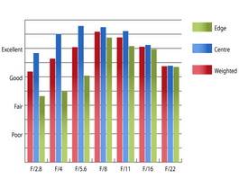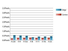 变焦至35mm端,最大光圈下的表现与24mm端时非常相似,当收缩光圈时边缘锐度的改善并不明显,f/8时锐度表现最佳。