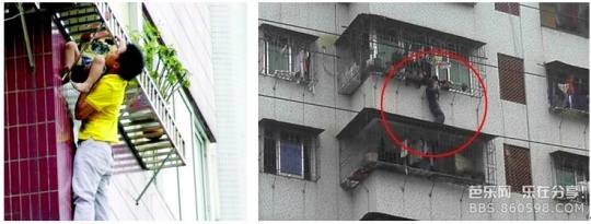 2012年6月3日,广东黄衣托举哥周冲一“举”成名,各媒体争相报道,而最近另有两名托举哥也是通过徒手攀爬防盗网托举救人——一位是40岁肇庆市民从7楼爬下6楼救人,另一位60岁广州大叔从1楼爬上4楼救人,但他们却没有成为公众焦点,吸引媒体关注却只有黄衣托举哥,这是为什么呢?其实主要原因之一就是曝光图片的吸引力。