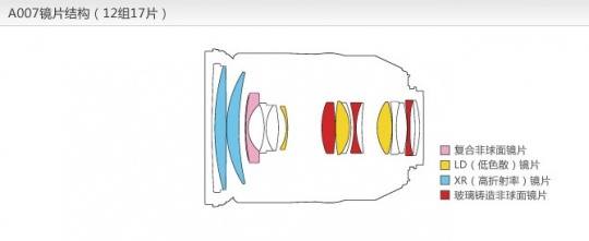 腾龙A007的对焦驱动采用圆环型USD超声波“Ultrasonic Silent Drive”静音马达,支持全时手动对焦功能。镜头结构为17片12组,内置3片LD(低色散)镜片和3片玻璃铸造非球面镜片,1个复合非球面镜片和2个XR(高折射率)镜片,并采用了圆型光圈叶片。为了防止水气渗透到镜头内部,这款镜头具备简易防滴溅构造设计。此外这款镜头提供佳能、尼康和索尼三种卡口,本次测试的采用佳能卡口。