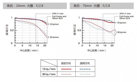 从实拍来看,这款镜头24mm广角端存在桶形畸变。在f/2.8全开光圈下暗角比较严重,光圈收到f/4.0之后有所减轻,在f/5.6暗角基本消失。而70mm端枕型畸变非常小,基本不明显。