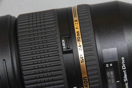 腾龙A007通体采用黑色哑光面,镜头中部有显眼的“金圈”,金圈上有镜头型号标识。变焦环与金圈之间有“LOCK”变焦锁,该设计在腾龙的变焦镜头上得到普遍应用。变焦锁可将镜头锁在广角端,防止垂头(镜筒向下滑出)。