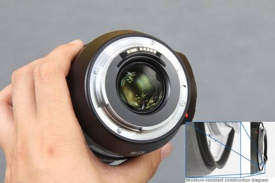 前文提到腾龙在这支镜头上采用了简易防滴溅构造设计,镜头尾部在卡口和镜身之间有密封胶圈。