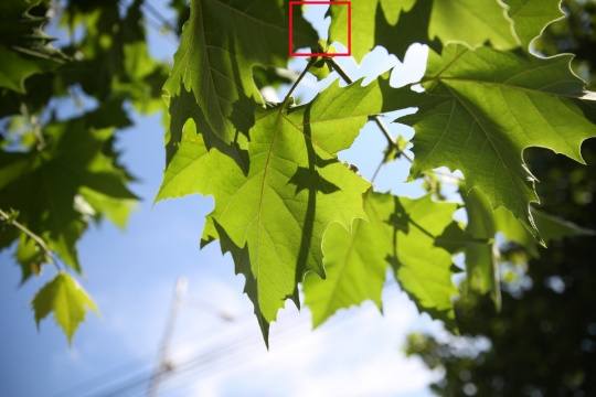 大光比逆光下,我们观察一下叶片明暗交接部分。从图中可以看到这款镜头的紫边还是存在的,各级光圈下都不同程度存在,似乎收小光圈并不能彻底消失。