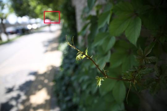 全开f/2.8光圈下,我们来观察焦外虚化效果,从图上截图来看这款镜头的虚化能力不错,二线性并不明显,虚化光斑呈圆形,与这款镜头采用9圆形光圈叶片有关。如果从全开收缩2档光圈呈现的圆形更好,可获得更佳的虚化效果。