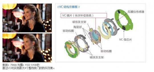 我们知道腾龙A007搭载了VC(Vibration Compensation)防抖功能,防抖加上f2.8大光圈低光照下有助于增加成功率。以往的VC防抖机构,补偿镜片侧配置了较重的电磁铁,采用的是可动磁铁方式。这款镜头是新VC机构采用的是较轻的可动线圈方式。3组驱动线圈,通过3个陶瓷球以电磁驱动方式控制补偿镜片,实现低摩擦的平滑运动。这样的技术可降低驱动系统的负载,使防抖结构更轻更紧凑。