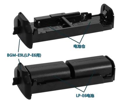 电池夹BGM-E9L可以装两节LP-E6锂电池,适合大数量的图片拍摄。