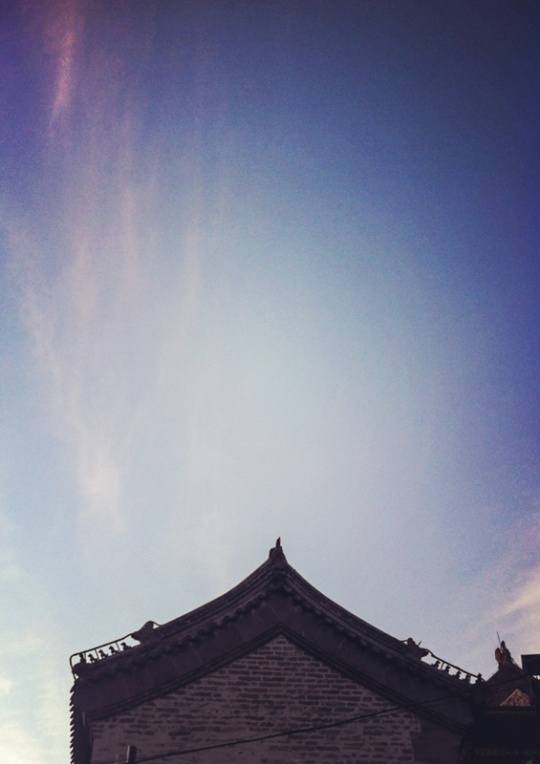 同样,这张也是在早晨进行拍摄的,构图上我使用了大量的留白(天空),这样画面的重点反而吸引到了寺庙上。