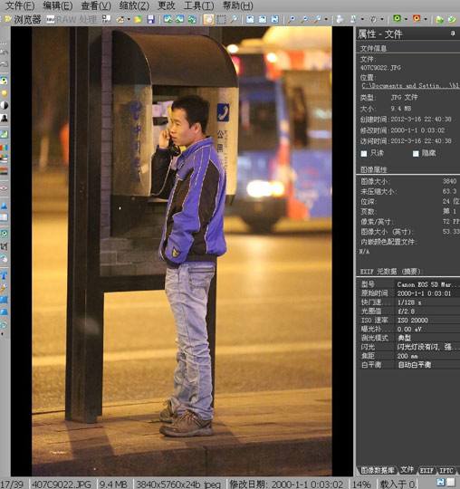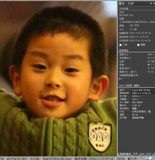 ISO20000,平生算第一次用到这个感光度,以前用过的四个数码单反是佳能的10D,20D,5D和1Ds mark III。高感表现是我比较看重的指标。