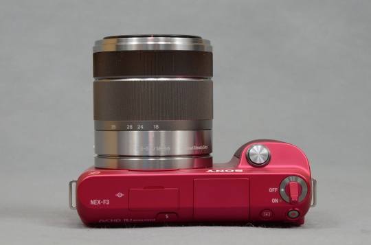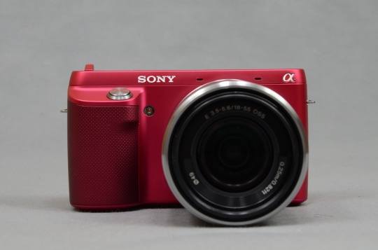 索尼NEX-F3的外观设计并没有继承NEX-C3,倒是有些NEX-7的影子,整个机身体积并没有减小反而增大,三围达到117.3 x 66.6 x 41.3mm,机身重量255g,这样的块头可以说在NEX系列中仅次于旗舰NEX-7。NEX-F3机身设计选用了粉红色、银色、黑色三种色彩,为用户提供更多选择。小编觉得这款相机没有提供女性用户喜欢的白色,还是比较遗憾的,希望后续能推出白色版本。
