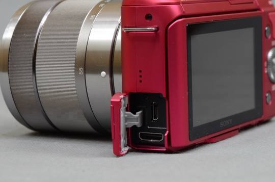 接口方面并不多仅有,包括了USB2.0(高速)、迷你HDMI接口及麦克风接口。存储方面,NEX-F3具备独立的存储卡插槽,并非与电池仓设计在一起。支持SD(SDHC/SDXC)与记忆棒两种存储卡规格,由于这款相机具备较强的高清视频拍摄能力和连拍性能,建议使用大容量高速的存储卡。续航方面,NEX-F3使用NEX系列通用的NP-FW50可重复充电电池。值得注意的是这款NEX-F3可以通过USB端口直接充电,如果忘记带充电器完全可以用手机的USB充电数据线插到PC上应急充电。